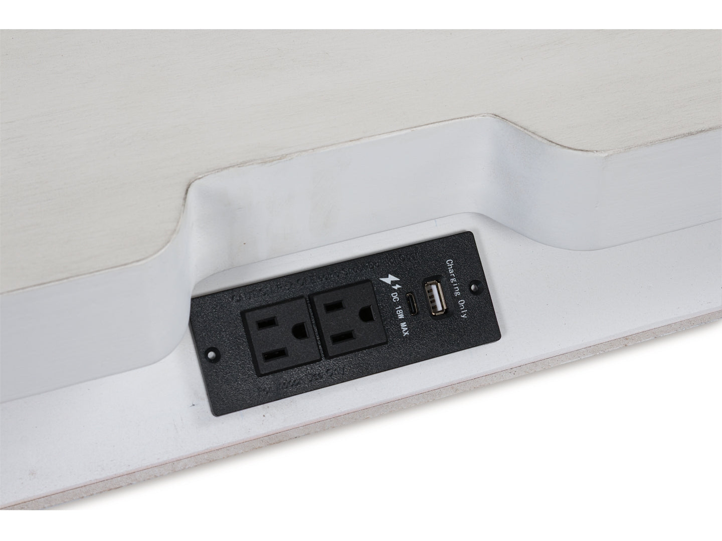 | Details | Made with hardwood solids, veneers and MDF substrates, Rubbed antiqued white finish, Metal hardware with pewter-tone finish, 3 smooth-gliding drawers with fully finished interiors, French/English dovetail construction and heavy-duty ball-bearing side glides, Top drawer felt lined, 110V power supply with USB-A and USB-C charging ports, Power cord included; UL listed | |
